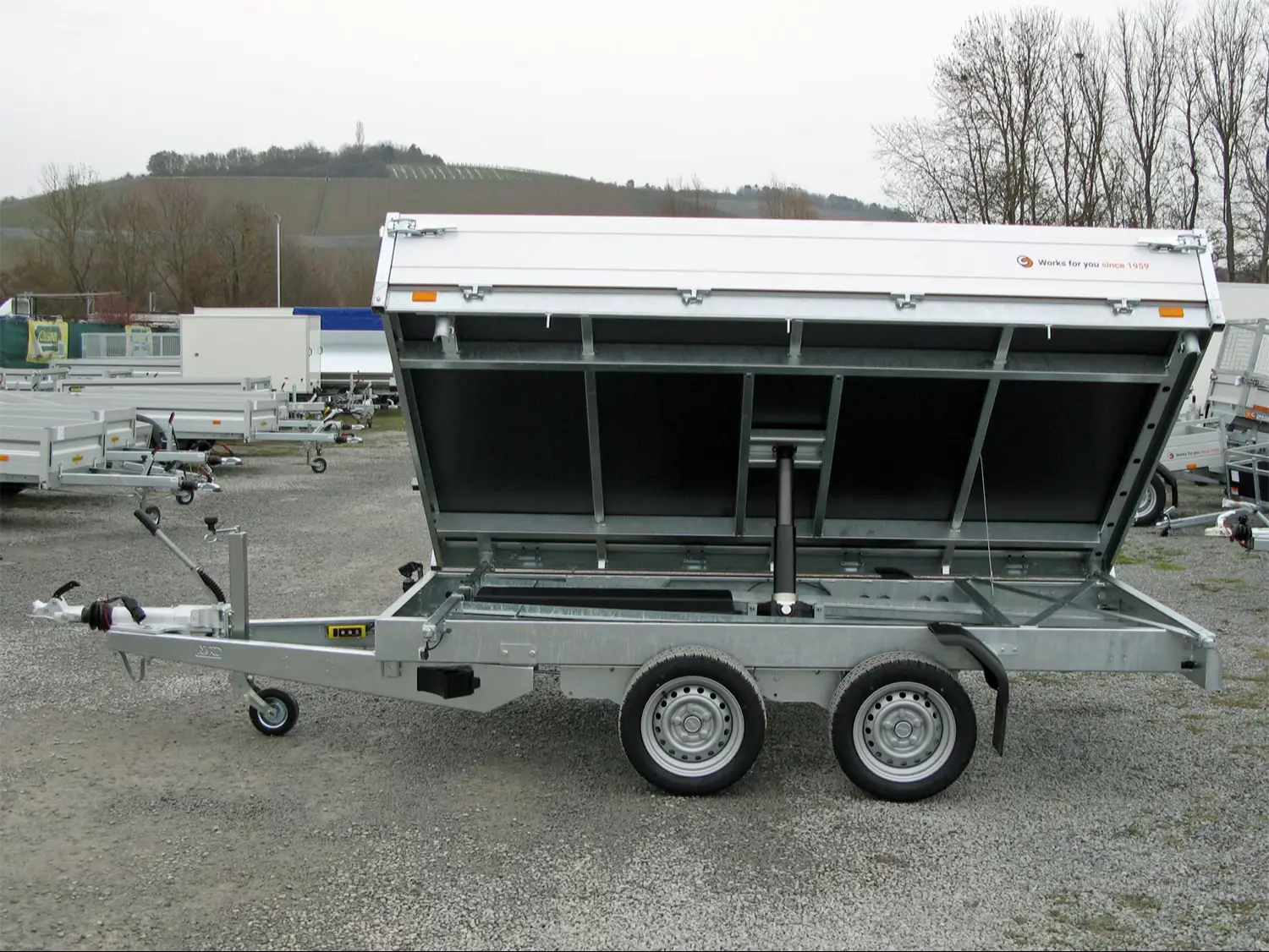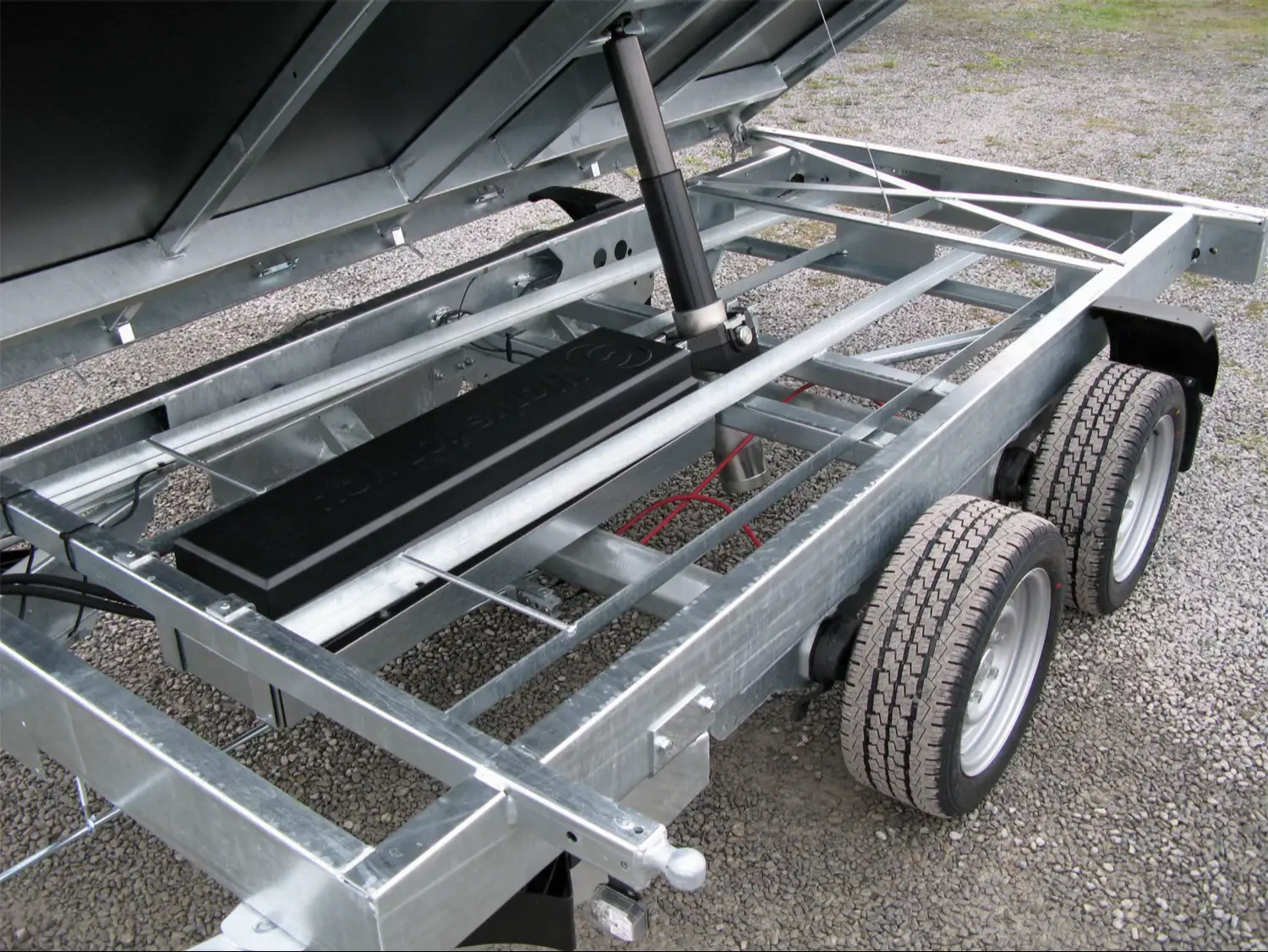 Das vollverschweißte und feuerverzinkte Chassis sorgt für eine lange Lebensdauer und optimalen Korrosionsschutz, selbst bei intensiver Nutzung. Die Kombination aus starker Hydraulik und großem Kippwinkel von 42° ermöglicht ein schnelles und effizientes Entladen von Schüttgut wie Erde, Sand oder Kies.