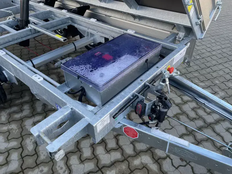 Die Kombination aus elektrischer Hydraulikpumpe und Nothandpumpe sorgt für maximalen Bedienkomfort und gleichzeitig hohe Betriebssicherheit. Auch bei Ausfall der Elektrik bleibt der Anhänger jederzeit einsatzbereit.