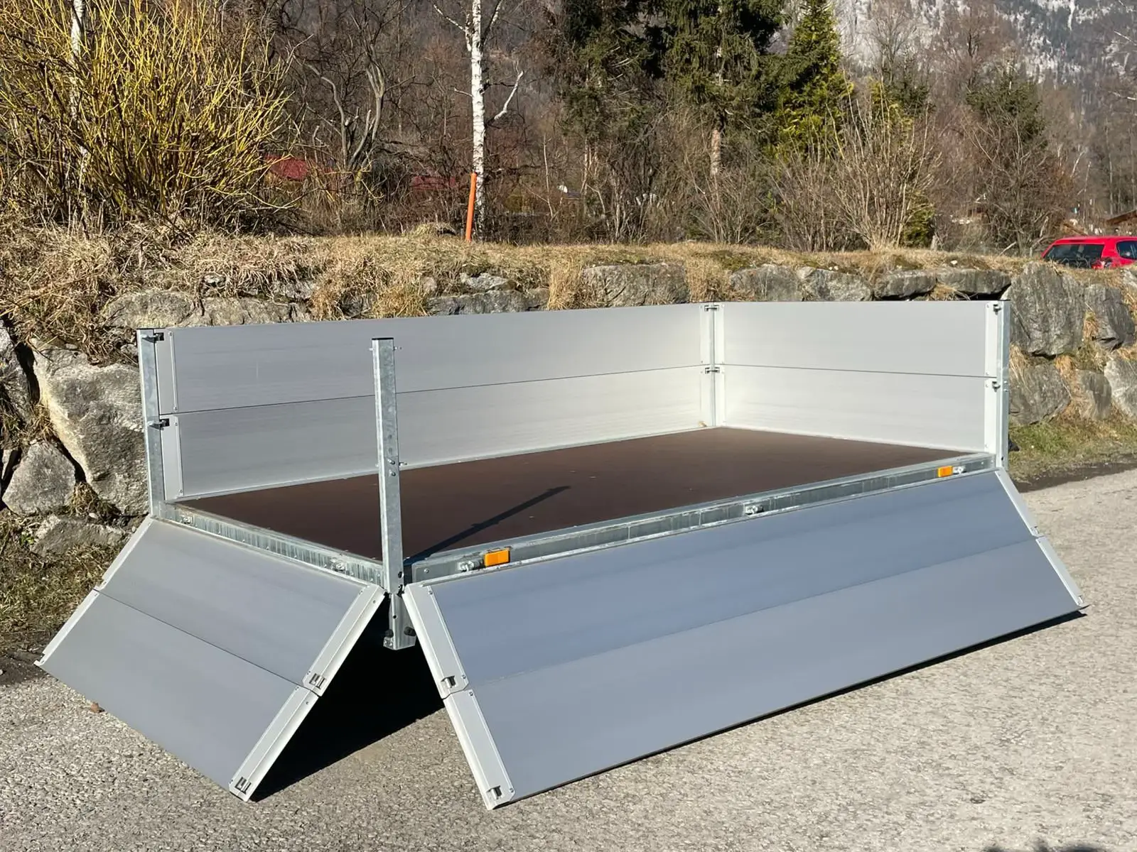 Die Hochlader-Bauweise ermöglicht eine uneingeschränkte Nutzung der gesamten Ladefläche – ideal für breite oder sperrige Güter. Gleichzeitig sorgen die klappbaren und abnehmbaren Bordwände für maximale Flexibilität beim Be- und Entladen.
