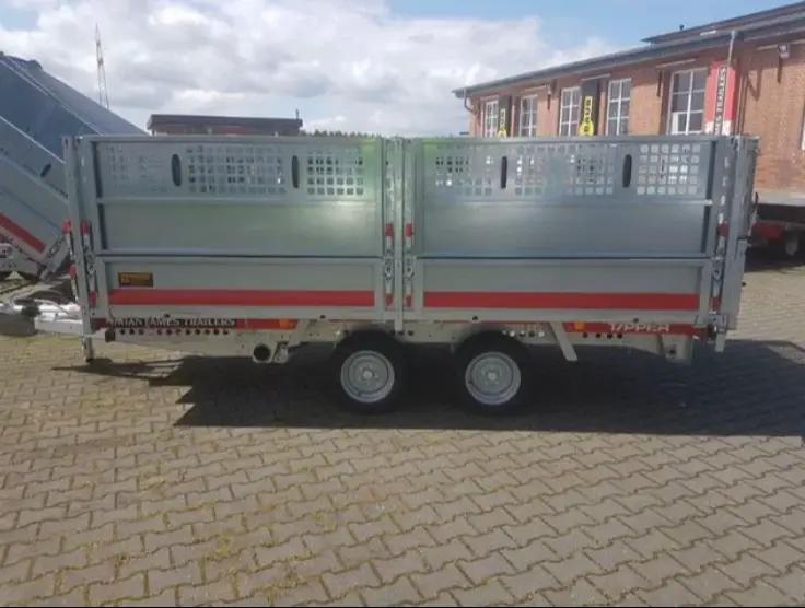 Der Brian James Trailers Tipper 2 ist ein leistungsstarker hydraulischer Kipper Anhänger, der speziell für den professionellen Einsatz entwickelt wurde. Dank seiner stabilen Konstruktion und hohen Nutzlast eignet er sich perfekt für anspruchsvolle Arbeiten im Bauwesen, Gewerbe und Transportbereich.