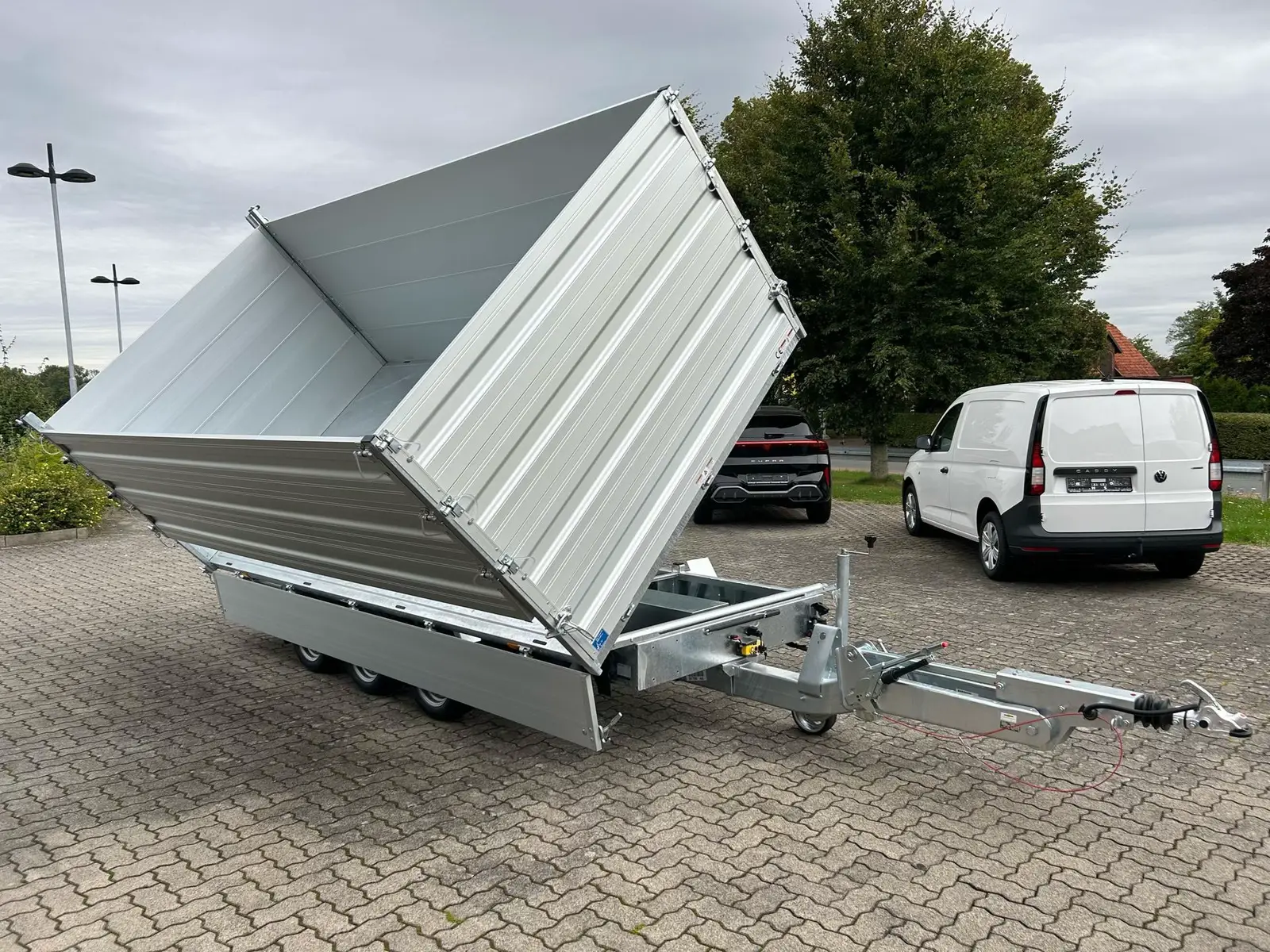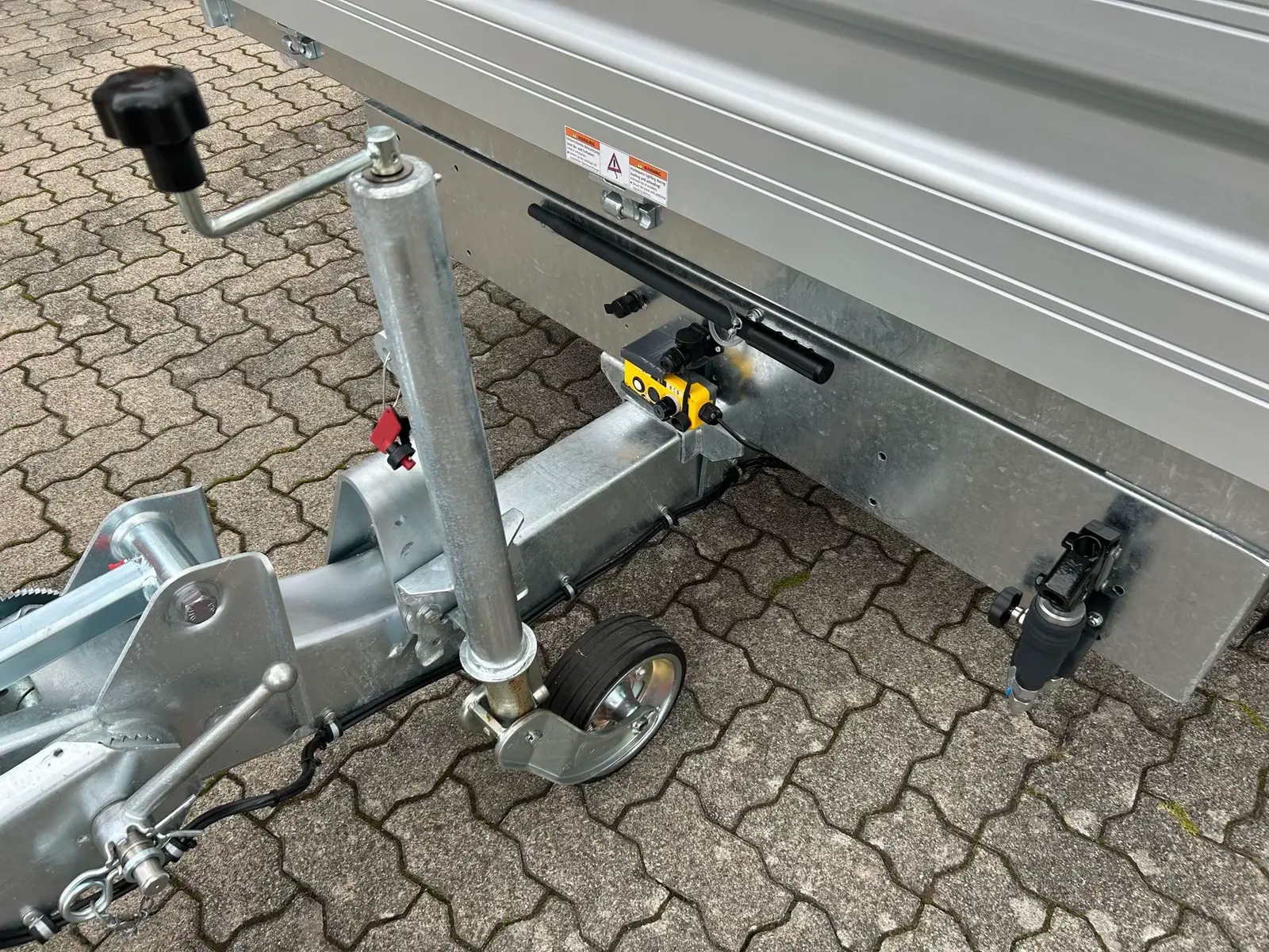 Auch bei der Entladung spielt der Anhänger seine Stärken aus: Die Dreiseiten-Kippfunktion bietet maximale Flexibilität – ob nach hinten oder zur Seite, Sie entscheiden je nach Einsatz, wie effizient entladen wird.