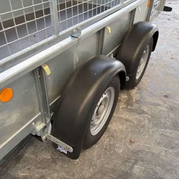 Die Tandemachse sorgt für eine gleichmäßige Lastverteilung und ein ruhiges Fahrverhalten – auch bei höherer Beladung. Der Anhänger ist auf Langlebigkeit ausgelegt und überzeugt durch seine stabile Konstruktion sowie praktische Details wie Lampenschutzbügel und Ersatzrad.