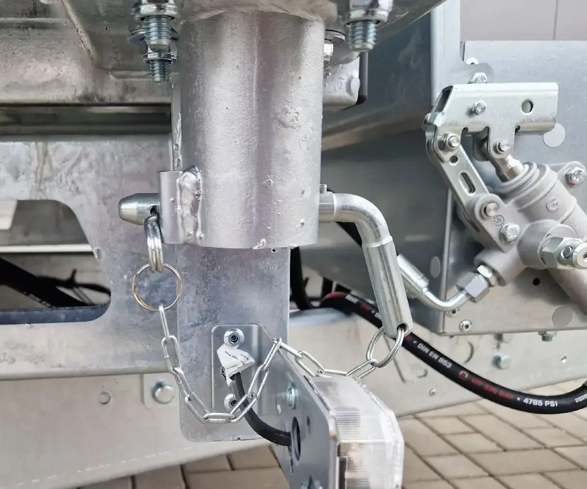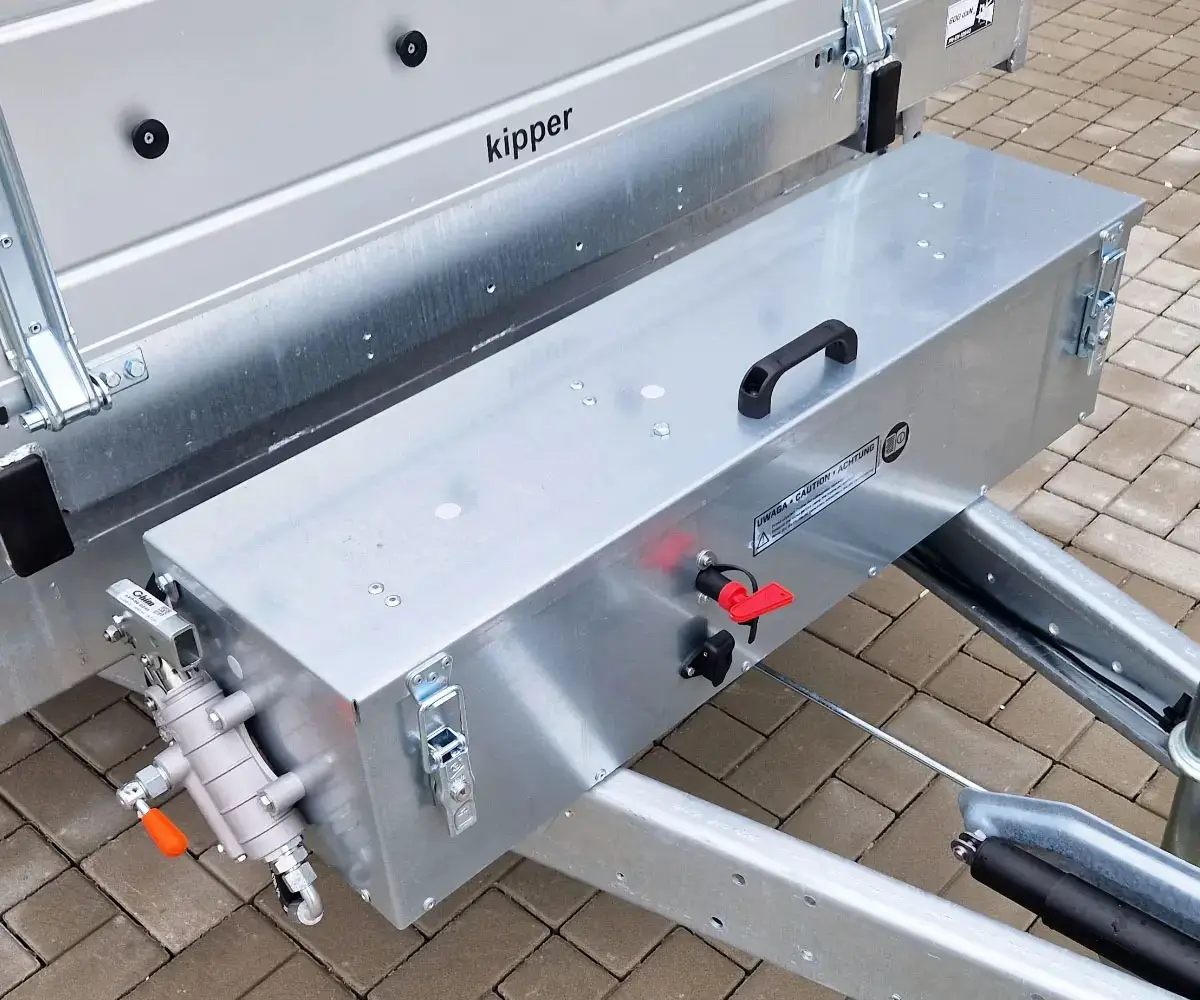 Ausgestattet mit einer Kombination aus Elektro- und Handpumpe, lässt sich der Kipper komfortabel bedienen und bleibt auch bei Stromausfall einsatzbereit. Der hydraulische Teleskopzylinder gewährleistet dabei eine kraftvolle und gleichmäßige Kippbewegung.