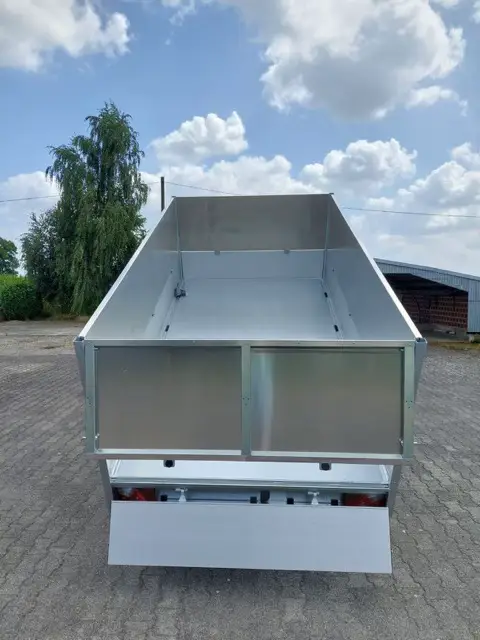 Ein weiteres Highlight ist der geschlossene Laubgitteraufsatz aus Aluminium, der das Ladevolumen erhöht und den sicheren Transport von leichten Materialien ermöglicht. Die montierten Heckstützen sorgen dabei für zusätzliche Stabilität beim Kippvorgang.