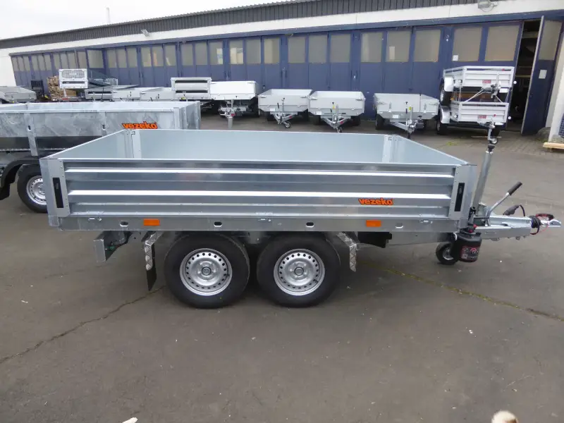 Der VEZEKO Profi Stahl-Rückwärtskipper ist ein hochwertiger hydraulischer Kipper Anhänger, der speziell für den professionellen Einsatz im Bau- und Transportbereich entwickelt wurde. Mit seiner robusten Stahlkonstruktion und einer hohen Nutzlast von über 2.100 kg ist dieser Anhänger perfekt für schwere Lasten und intensive Nutzung geeignet.